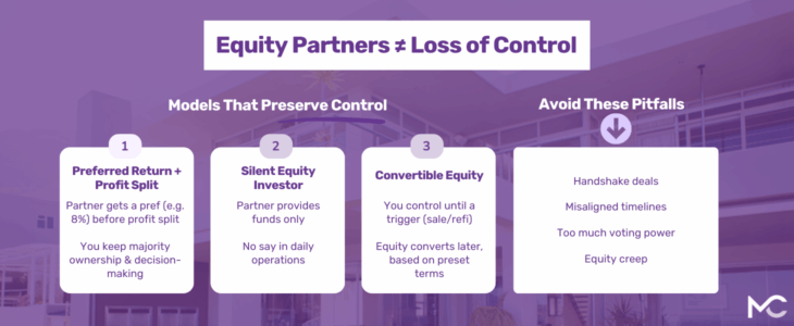 Raising capital is part of scaling any real estate business—but what happens when the check comes with strings attached? For many first-time syndicators, aspiring developers, or mid-tier operators, the idea of bringing in an equity partner often feels like an all-or-nothing proposition: you get the capital, but lose control.